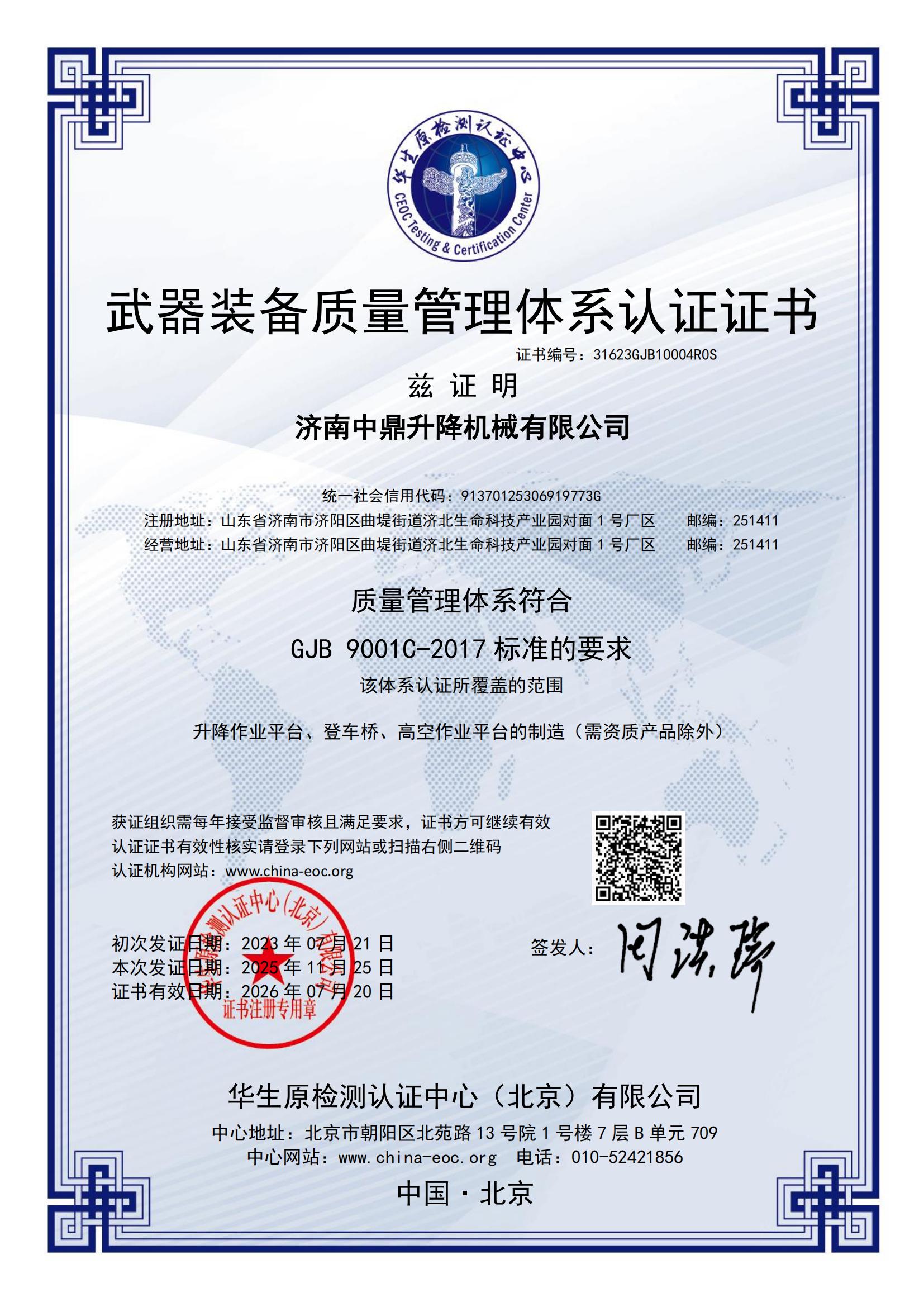 武器裝備管理體系認證